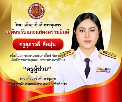 วิทยาลัยอาชีวศึกษาชุมพรขอต้อนรับและแสดงความยินดี🎉 ✨ครูสุภาวดี สีหมุ่น✨