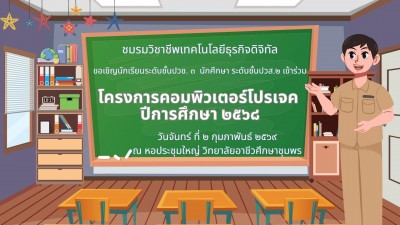 ขอเชิญคณะครู นักเรียนระดับชั้นปวช.3 และนักศึกษาระดับชั้นปวส.2 แผนกวิชาธุรกิจดิจิทัล เข้าร่วมโครงการคอมพิวเตอร์โปรเจค ปีการศึกษา ๒๕๖๘