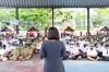 นางอรสา โรยภิรมย์ ครูประจำแผนกวิชาสามัญสัมพันธ์ขึ้นพบปะและให้โอวาทแก่นักเรียน นักศึกษา เกี่ยวกับวันสำคัญทางศาสนา วันวิสาขบูชา