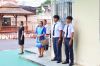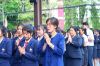 คณะผู้บริหาร คณะครูให้การต้อนรับ และอำนวยความสะดวกในการข้ามถนนและที่จอดรถของนักเรียนนักศึกษา และกิจกรรมหน้าเสาธง บริเวณอาคารอเนกประสงค์(โดม)