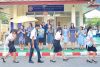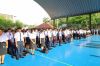 บรรยากาศเช้านี้ คณะผู้บริหาร คณะครูยืนต้อนรับ และอำนวยความสะดวกในการข้ามถนน ที่จอดรถของนักเรียนนักศึกษา และกิจกรรมหน้าเสาธง บริเวณอาคารอเนกประสงค์(โดม)