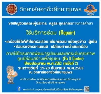 วิทยาลัยอาชีวศึกษาชุมพร สำนักงานคณะกรรมการ การอาชีวศึกษา (สอศ) ได้รับการรับรองจากกรมอนามัย และ Thai Stop Covid เป็นสถานประกอบการ สถานศึกษา สะอาด ปลอดภัย ป้องกันโรค Covid -19 ผ่านมาตรฐานการรับรอง