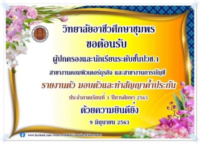 วันนี้ (3 ส.ค.2564) นางจุรีวรรณ อรัญพฤกษ์ รองผู้อำนวยการฝ่ายแผนงานและความร่วมมือ วิทยาลัยอาชีวศึกษาชุมพร