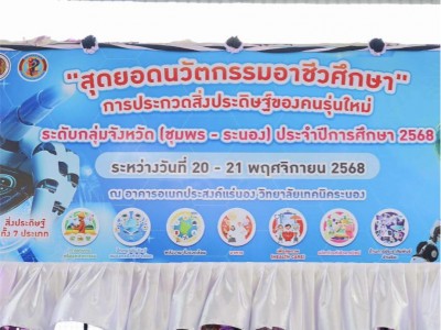 เริ่มแล้วสุดยอดนวัตกรรมอาชีวศึกษาชุมพร'การประกวดสิ่งประดิษฐ์ของคนรุ่นใหม่ ระดับกลุ่มจังหวัด(ชุมพร-ระนอง)