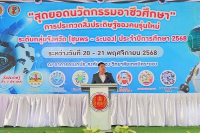 วันพุธที่ 26 พฤศจิกายน 2568 รองผู้ว่าราชการจังหวัดชุมพร นายอภิชาติ สาราบรรณ์ ให้เกียรติเป็นประธานในพิธีเปิด งานประชุมวิชาการองค์การนักวิชาชีพในอนาคตแห่งประเทศไทย และการแข่งขันทักษะวิชาชีพ ทักษะพื้นฐาน ระดับจังหวัดชุมพร
