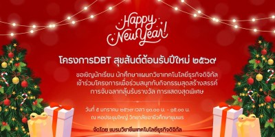 📢ขอเชิญคณะครู และนักเรียนนักศึกษา เข้าร่วมโครงการ DBT สุขสันต์ต้อนรับปีใหม่ ๒๕๖๙ ในวันที่ ๕ มกราคม ๒๕๖๙ เวลา ๑๓.๐๐ น. - ๑๕.๐๐น. ณ หอประชุมใหญ่ วิทยาลัยอาชีวศึกษาชุมพร