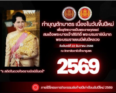 📢ขอเชิญคณะผู้บริหาร ครู บุคลากร นักเรียน นักศึกษา วิทยาลัยอาชีวศึกษาชุมพร ร่วมทำบุญตักบาตร เนื่องในวันขึ้นปีใหม่ เพื่อนอุทิศถวายเป็นพระราชกุศลแด่ สมเด็จพระนางเจ้าสิริกิติ์ พระบรมราชินีนาถ พระบรมราชชนนีพันปีหลวง ในวันจันทร์ที่ 22 ธันวาคม 2568 ณ วิทยาลัยอาชีวศึกษาชุมพร