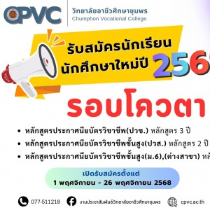 นับถอยหลัง 3 วันสุดท้าย!! วิทยาลัยอาชีวศึกษาชุมพร รับสมัครนักเรียนนักศึกษาใหม่ปี69✨🫵